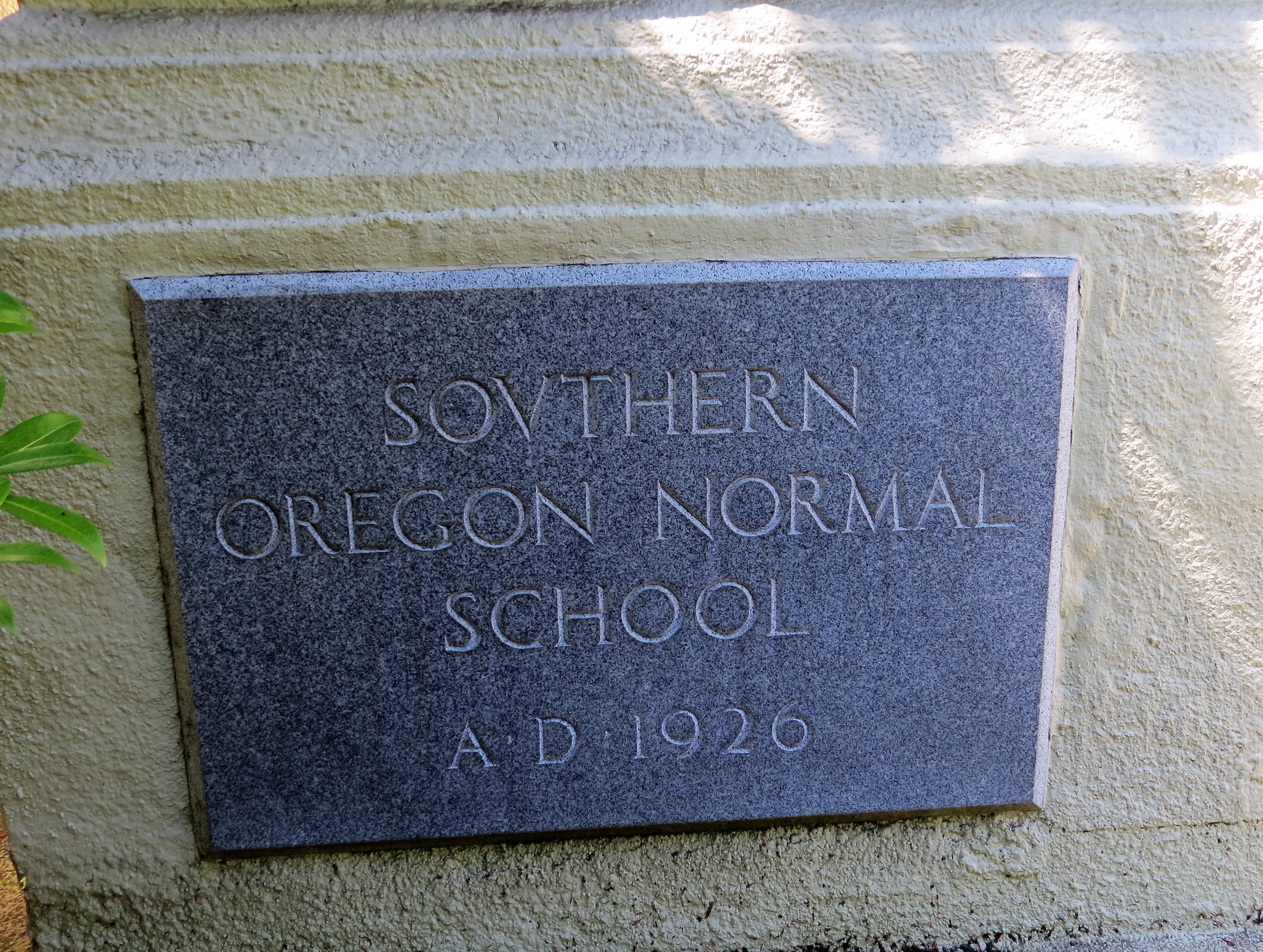 Churchill Hall is currently the administration building on the campus of Southern Oregon University. According to an article in Wikipedia on Southern Oregon University, the state reestablished funding for a normal school in 1925. Ashland residents passed the “Normal School Site Bond” and purchased 24 acres where Churchill Hall is now located. The state legislature provided $175,000 to build Churchill Hall, the first building on the new campus. The building was designed by architect John Bennes in the Renaissance style. The same plans were used to build Inlow Hall at Eastern Oregon University. The building was later named for Julius A. Churchill who was the first president (from 1926-1932) at the new location. At the time of its construction the school was known as the Southern Oregon Normal School. A plaque attesting to its original name and date of construction is mounted on the building to the left of the front entrance, partially hidden by bushes.