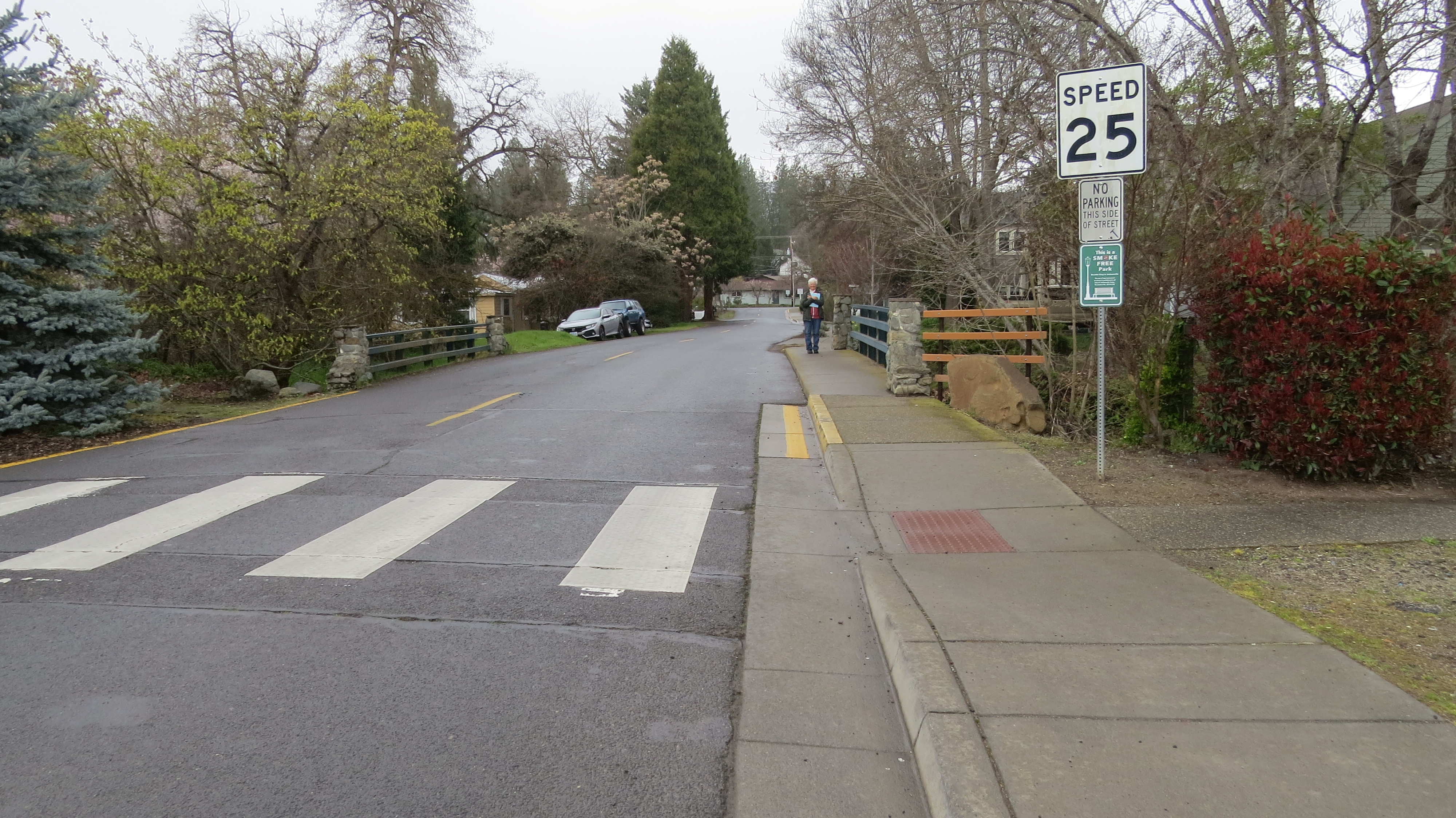 The Plaque is on the bridge crossing Jackson Creek on East F Street in Jacksonville. Coming from Medford on Highway 238 (which becomes North 5th Street in Jacksonville), turn right onto F Street. The bridge is straight ahead, just past North 4Th Street’s terminus into F Street. The plaque is across the bridge on a pillar on the right side of the road.