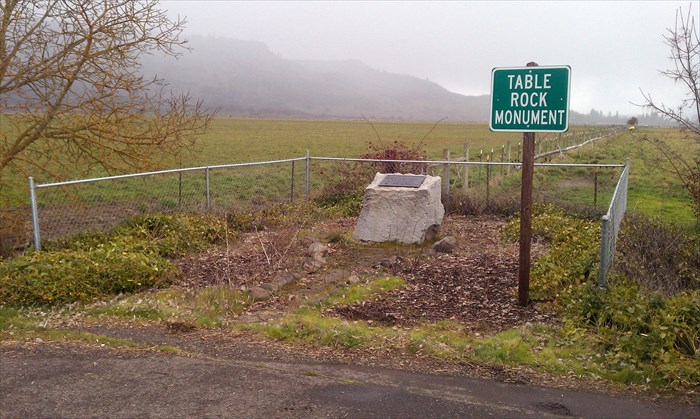 From Medford, drive out Table Rock Road. The Monument stone is on the right on Table Rock Road, 2.8 miles beyond Touvelle Park, and 2.0 miles past the junction of Table Rock Road and Modoc Road.