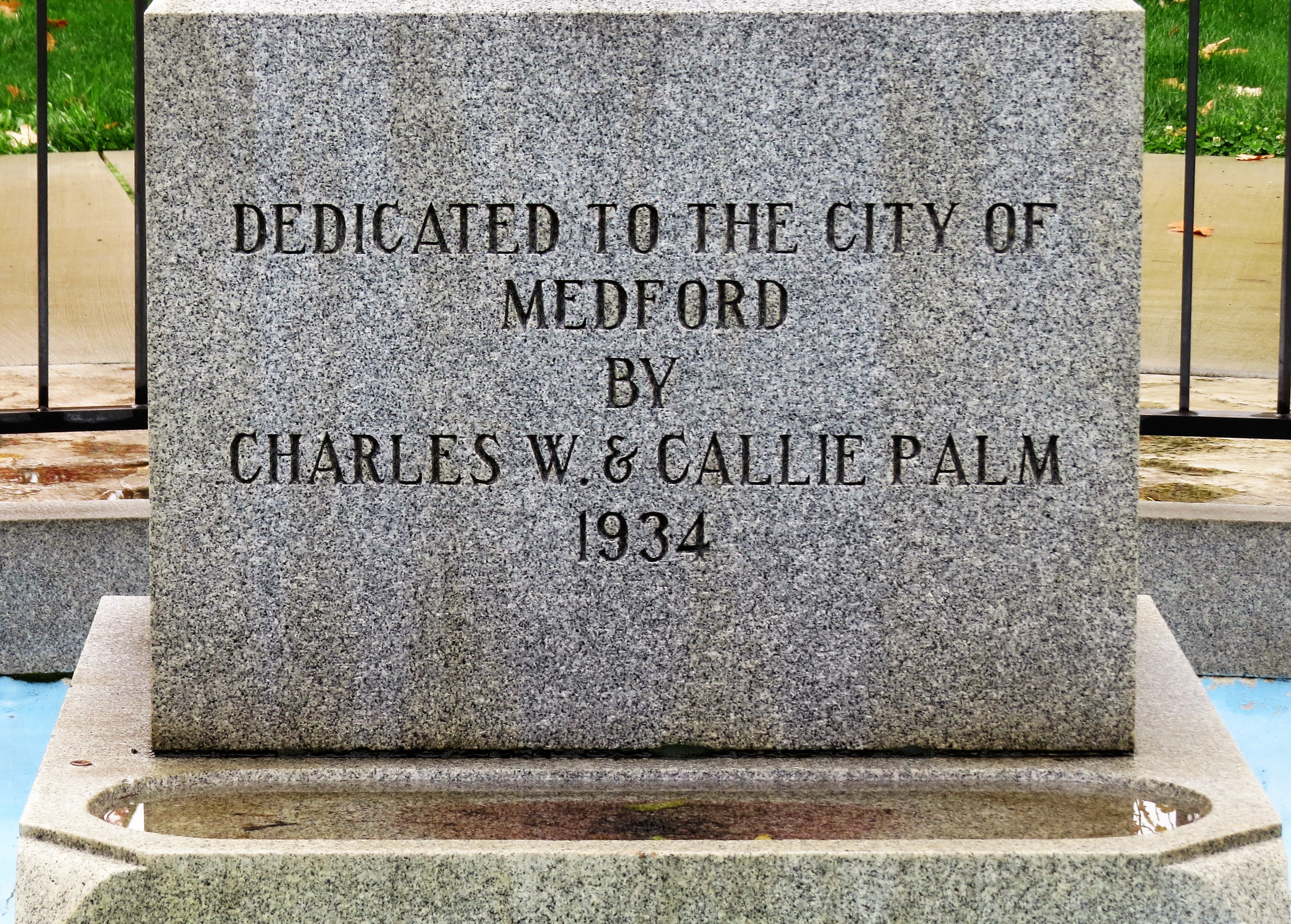 This Italian marble statue was donated to the city of Medford by Charles and Callie Palm, and was dedicated on April 19, 1935.